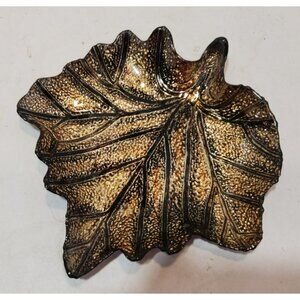 Yankee Candle Decorative Glass Gilded Leaf Shaped Candle Tray Trinket Dish