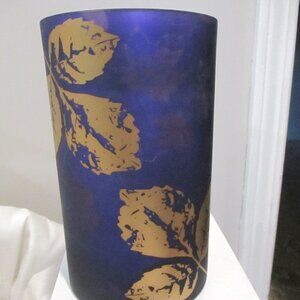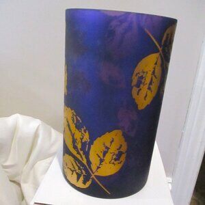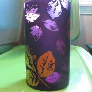 Yankee Candle Deep Purple w/Gold Leafs "MIDNIGHT FALL" 8" X 5" Glass Holder Rare