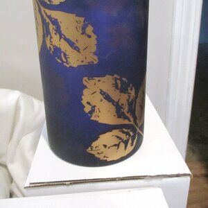 Rare Yankee Candle Deep Purple w/Gold Leafs "MIDNIGHT FALL" 8" X 5" Glass Holder Rare New with tag on bottom
