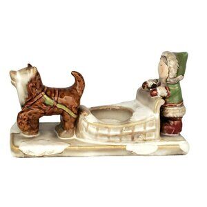 Yankee Candle Eskimo Husky Tealight Holder Votive Dog Sled Girl Snow Holiday