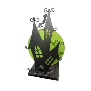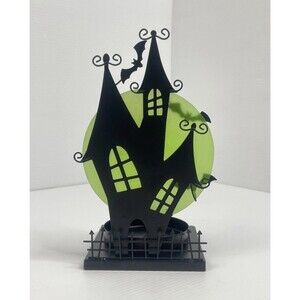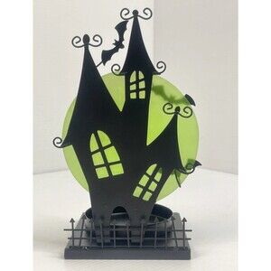 Yankee Candle Halloween Haunted House Large Candle Holder w/ Green Glass Moon. Condition is Used. Shipped with USPS Ground Advantage.
