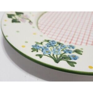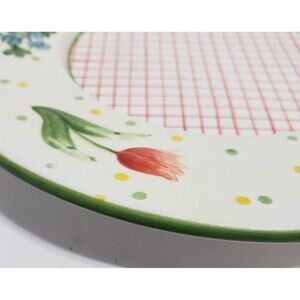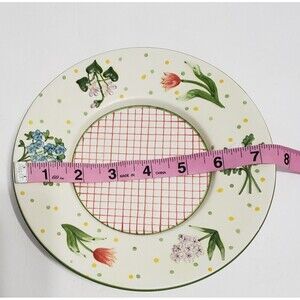 Floral Garden 7.5" Diameter Cream with Green trim and multi-colored raised flowers. No chips, stains or cracks. Please note: Color on photographs may vary depending on the individual computer, laptop or any smart device screens and lighting.