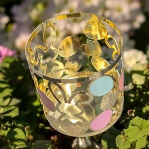 Yankee Candle Large Jar Holder J/H EASTER EGGS Gold Bunnies (EUC)