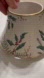 Large Ceramic Yankee Candle Cover. Holly leaves and berries. Cream base, gold trim.