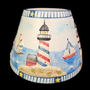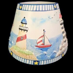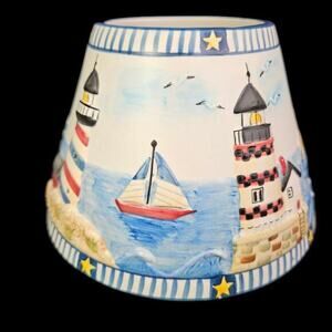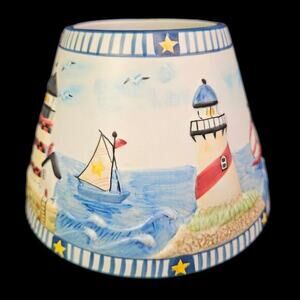 Yankee Candle Large Shade Spring Summer Lighthouse Beach Nautical Boats Embossed