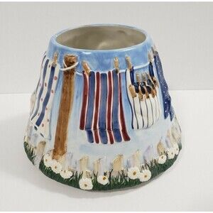 Vintage Yankee Candle Ceramic LAUNDRY DAY JAR SHADE Large Topper Clothesline Fence Farmhouse Cottagecore Prairie