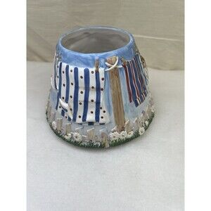 Add a touch of shabby chic to any room with this Yankee Candle Laundry Day Jar Topper Shade Plate. Featuring a colorful all-over pattern and a lamp-shaped design, this ceramic shade topper plate is perfect for holding your favorite jar candle. The large size and free-standing mounting make it a versatile addition to any home decor.