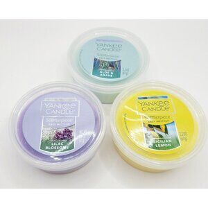 This set of three Yankee Candle Melt Cups Centerpiece Various Scents 2.2oz. These wickless tart/bars are made of wax and paraffin wax that ensure a long-lasting burn.