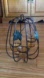 Elegant metal holder with amber glass cups. Features leaf accents for a natural touch.
