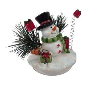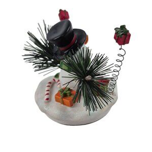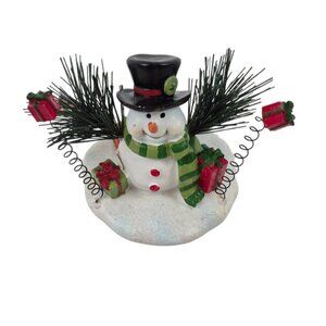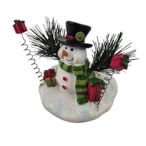 Add a touch of whimsy to your holiday decor with this charming snowman candle topper. Featuring festive gifts and a cheerful snowman in a green scarf.