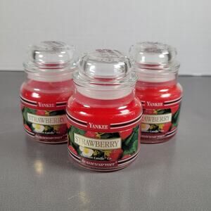 Yankee Candle Strawberry 3.7oz, Lot of 3 Small Jars Retired Black Band Rare VTG