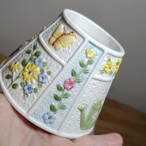 Like new small candle shade. Raised flower garden pattern. Very Cute.