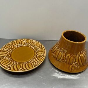 Yankee Candle Pumpkin Fall Leaves Ceramic Large Jar Candle Shade & Plate