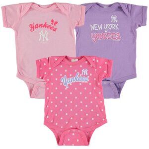 Yankees Soft as a Grape Girls Infant 3-Pack Rookie Bodysuit Set - 6 Months