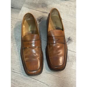 Yanko Men’s Leather Penny Loafers Size 10.5 Brown Square Toe Slip On