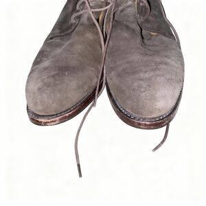 The boots shown in the selected region are a pair of Yanko chukka boots in a dark brown suede. These boots feature a studded Vibram rubber sole, which is known for durability and grip. A chukka boot is a versatile style that can be worn for various occasions.