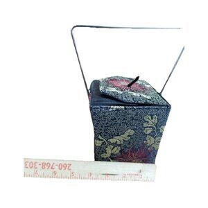 Yans NY Chinese Takeout Box Purse Satin Brocade Fuji Mums w Mirror Retro