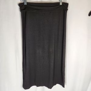 Yansi Fugel, Black, Fold Over Waist Band, Pull On Skirt. Size Medium. 90% rayon and 10% spandex. Gently used. No holes or stains. Smoke free home. Waist measures 32". Waist to hem measures 32".