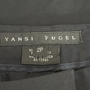 Yansi Fugel Slim Leg Dress Office Career Pants in Black - Size 2 Petite. Good pre-owned condition. One small issue...one of the inside back pockets is caught up in the waistband seam. This is a factory flaw. Doesn't change how they look and I don't know too many women who actually use the back pockets on dressier pants anyway. Really well made pants that have tons of wear left in them. Flat front, zip fly with hidden slide bar closure for a clean look, insurance button on the inside. Both pockets still have the secure stitching, one could be released and be functional if you so desire. Approximate measurements: 14" waist, 9 1/2" rise, 28 1/2" inseam.