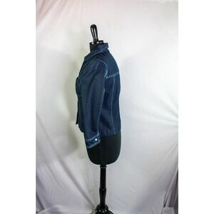 Yansi Fugel Snap Front Top Collared 3/4 Length Sleeves Blue Size S/P