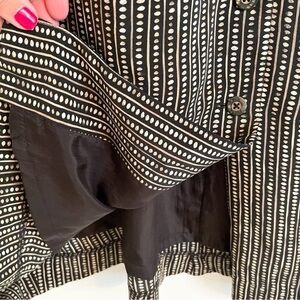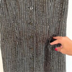 Yansi Fugel Vintage Minimalist Silk Print Midi Dress. Women's size 6. 100% silk, button-down front, sleeveless, fully lined, black and cream dot print, lightweight. Approximate measurements: 18" chest, 43.5" length (measured flat). Good pre-owned condition, minor repair at the bottom that is not very noticeable. See pictures for reference, price reflects.
