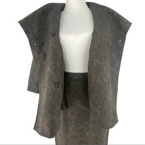 Yansi Fugel Women's Brown Paisley Striped Career Blazer Skirt Suit M-C38/8-W30