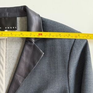 Tags yansi fugel coat small blue wool blend minimalist transitional fall winter layering padded shoulders made in usa lamb leather trim structured classic tailored vintage inspired timeless button up smart casual office wear street style elegant clean lines boutique quality soft warm cool weather
