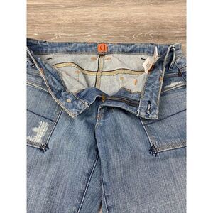 These pre-owned jeans have a vintage feel and are perfect for anyone who loves the USA theme. The Yanuk brand is known for its high-quality denim and these jeans are no exception. The fabric type is denim and the jeans are regular size. The category is clothing, shoes, and accessories, specifically women's clothing and jeans.