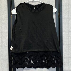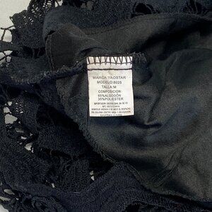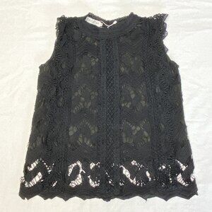 Yaostar Black Crochet Lace Sleeveless Ruffle Tank Top Tunic Lined Boho Chic M