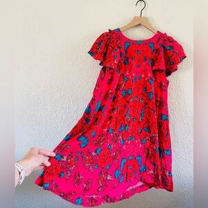 So flirty and femme with a classic flowery pattern, this easy-peasy mini is all relaxation with ruffled flutter sleeves for more depth. Fit: Relaxed, shapeless fitFeatures: Scoop neck, side pockets, flutter sleeves, zipper closure in back. Why We <3 It: Perfectly paired with a basic sandal in the warmer months or a stylish boot/loafer as the temperature drops, this uber-versatile mini is a must-have for your classic collection. Care/Import Machine Wash Cold Gentle