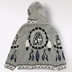 Yari Artesanias Vintage Hooded Cardigan Sweater Full Zip Large Gray Dream Catcher Native American