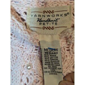 YarnWorks Petite Handknit Sweater Medium Ramie/Cotton Blend With Pearl Accents T