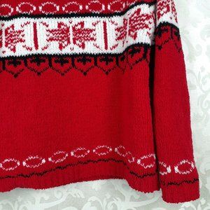 Yarnworks Snowflake Chunky Knit Sweater Size M. Red black white. Ski Novelty