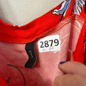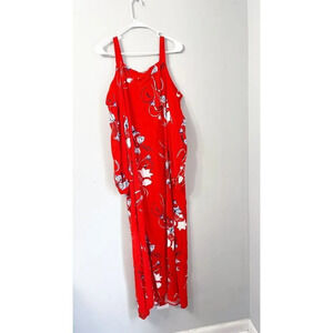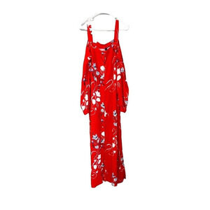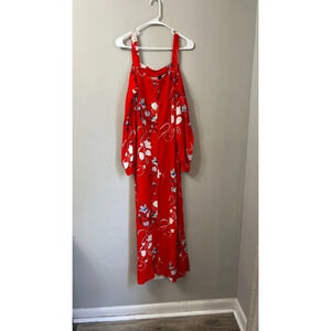 Yas Womens Red Maxi Dress Size Large Bluebells LS Ancle Floral Cold Shoulder Measurements taken while flat: 21 pit to pit and 58 length