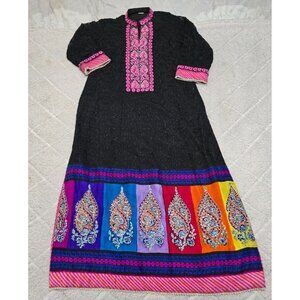 Yasmeen Arif Women's Embroidered Sequins Beaded 3/4 Blackout Sleeve Indian Kurta Dress One-size