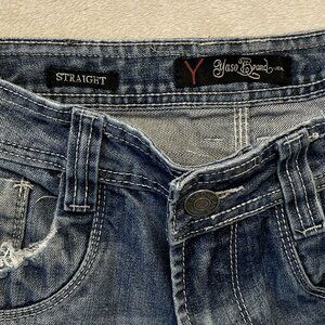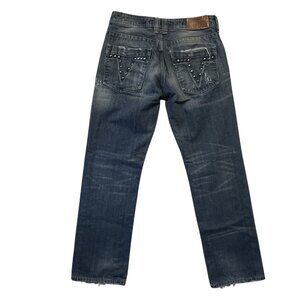 Yaso Brand Jeans Men 32 x 33 Blue Y2K Straight Distressed Studded Pockets Grunge