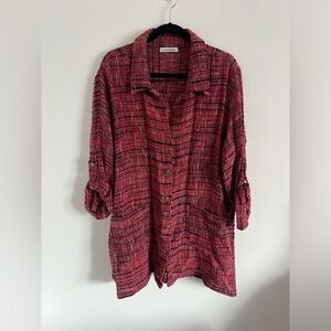 Yasuko Kurisaka Pink and Cotton Jacket, excellent condition. Lagenlook. Button up jacket with pockets. No size fits well on large and Xl. Bust measures 24 inches across, shoulder to hem is 33 inches