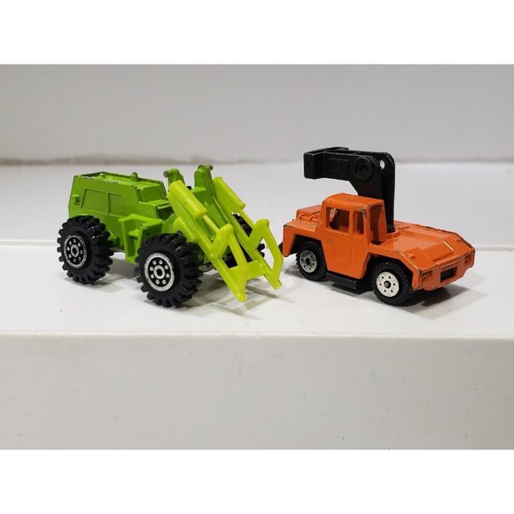 Yatming No. 1363 & 1367 Lot Of 2 Green Front Loader Missing Bucket Hong Kong Vtg