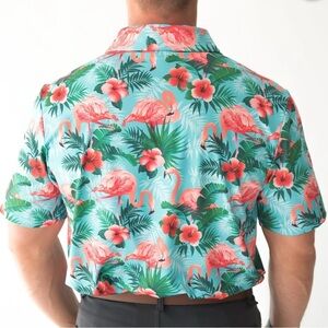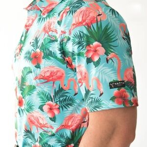 Yatta Golf Pau Hana Polo Flamingo Print Performance Polo Men's XXL Stretch