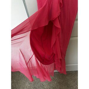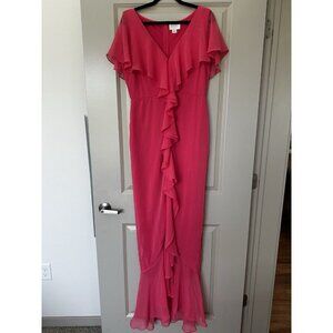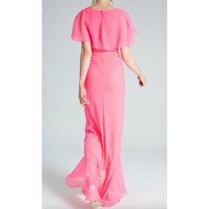 Yaura Isioma Dress in Pink Ruffle Flutter Sleeve Maxi US 8 UK 12 Bridesmaid. Excellent condition, one small mark on the back as pictured, extremely hard to notice and almost unremarkable.