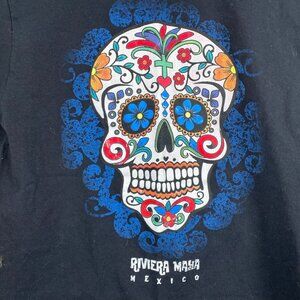 Yazbek Men's Graphic T-Shirt Medium Black Sugar Skull Riviera Maya Mexico