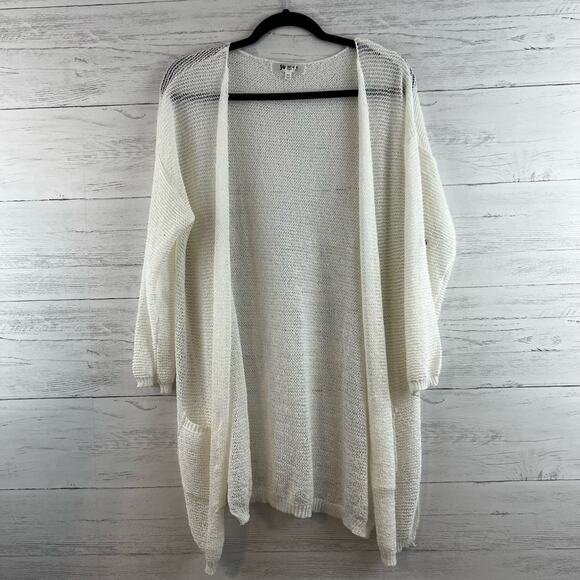 Ye Mak White Open Knit Pocket Cardigan Size M/L