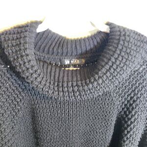 Ye Mak Women’s Cowl Neck Sweater Size Large Black Thick Knit Going Out Party