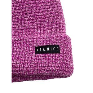 This Yea.Nice beanie in Heather Pink is perfect for women wanting warmth and style. Made of soft acrylic, it features a unique folded waffle weave design. One size fits all.