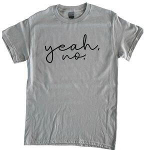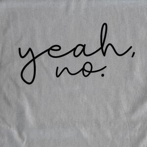 The Ice Gray color of this t-shirt is a unique shade that complements any skin tone. The "Yeah, no." slogan on the front of the shirt adds a touch of humor to your look while expressing your carefree attitude.