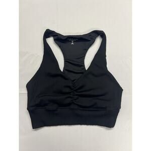Year Of Ours Ribbed Crop Top Size M Black USA Made Activewear Athletic Gym Yoga