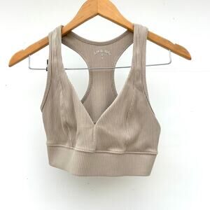 Year Of Ours Ribbed Tess V Sports Bra Racerback Caribou Medium Beige Yoga
