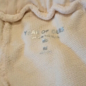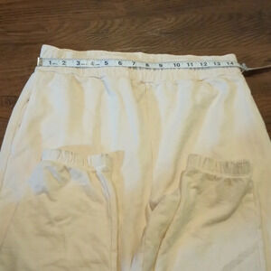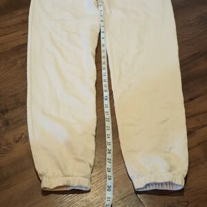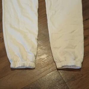 Details about the item: cream of white jogger sweatpants fit elastic waist and ankles some light discoloring on the ankle bands should wash out