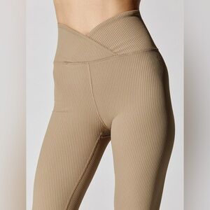 The Ribbed Veronica Leggings are 7/8 length and have a form-fitting cross V waist that accentuates the waistline.