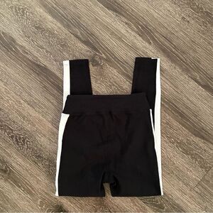 Year of Ours Thermal Track Leggings Black White Stripe Waffle Knit